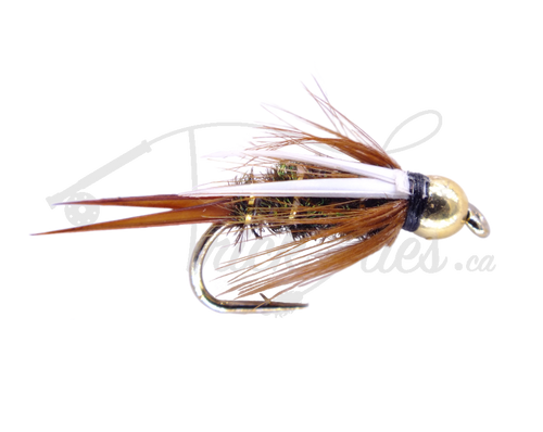 The Beadhead Prince Nymph was developed in Monterey, CA and is useful in both still and flowing water. One of our personal favorites for central Alberta's stocked trout ponds. When fishing this fly vary your retrieval speed and motion until you find what works.