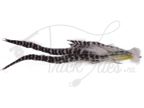 At 11 inches in length our Double Buford Chartreuse and White is one large fly but still light enough to cast long distances. Pike and musky really love this fly as it represents an easy, high calorie meal.