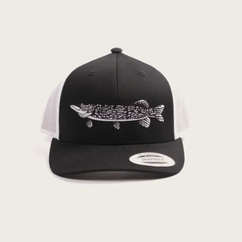 Classic 2-tone trucker snapback in Black/White with embroidered Pike Logo.