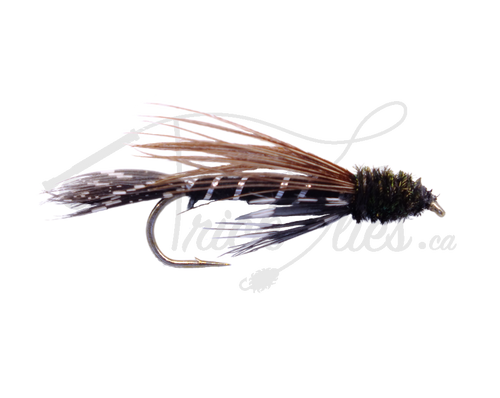 Best known as a trolling fly, the classic Doc Spratley black is best used as a searching pattern. Usually the first fly we use at a new lake, trolled slowly it almost always produces a fish.
