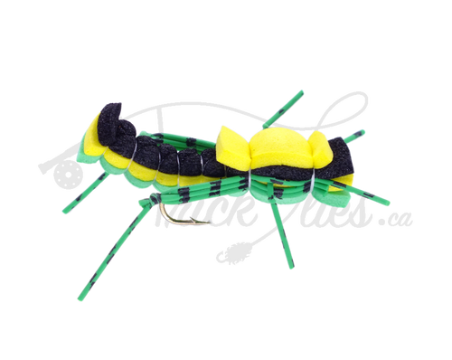 This is our favorite color variant of our Foam Hoppers. It seems most of the hoppers around central Alberta are of this color and we always make sure to have this fly in a few different sizes. Our foam hoppers ride high and even without floatant will suspend even the biggest droppers. The current Trickflies.ca record holder for Rainbow Trout.
