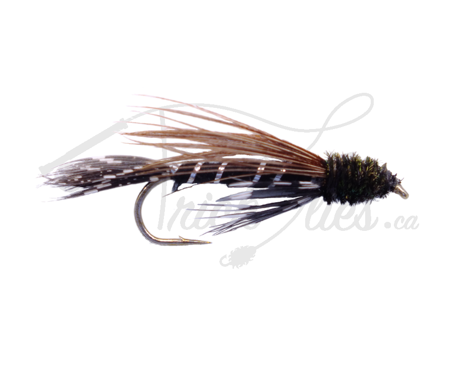 Best known as a trolling fly, the classic Doc Spratley black is best used as a searching pattern. Usually the first fly we use at a new lake, trolled slowly it almost always produces a fish.