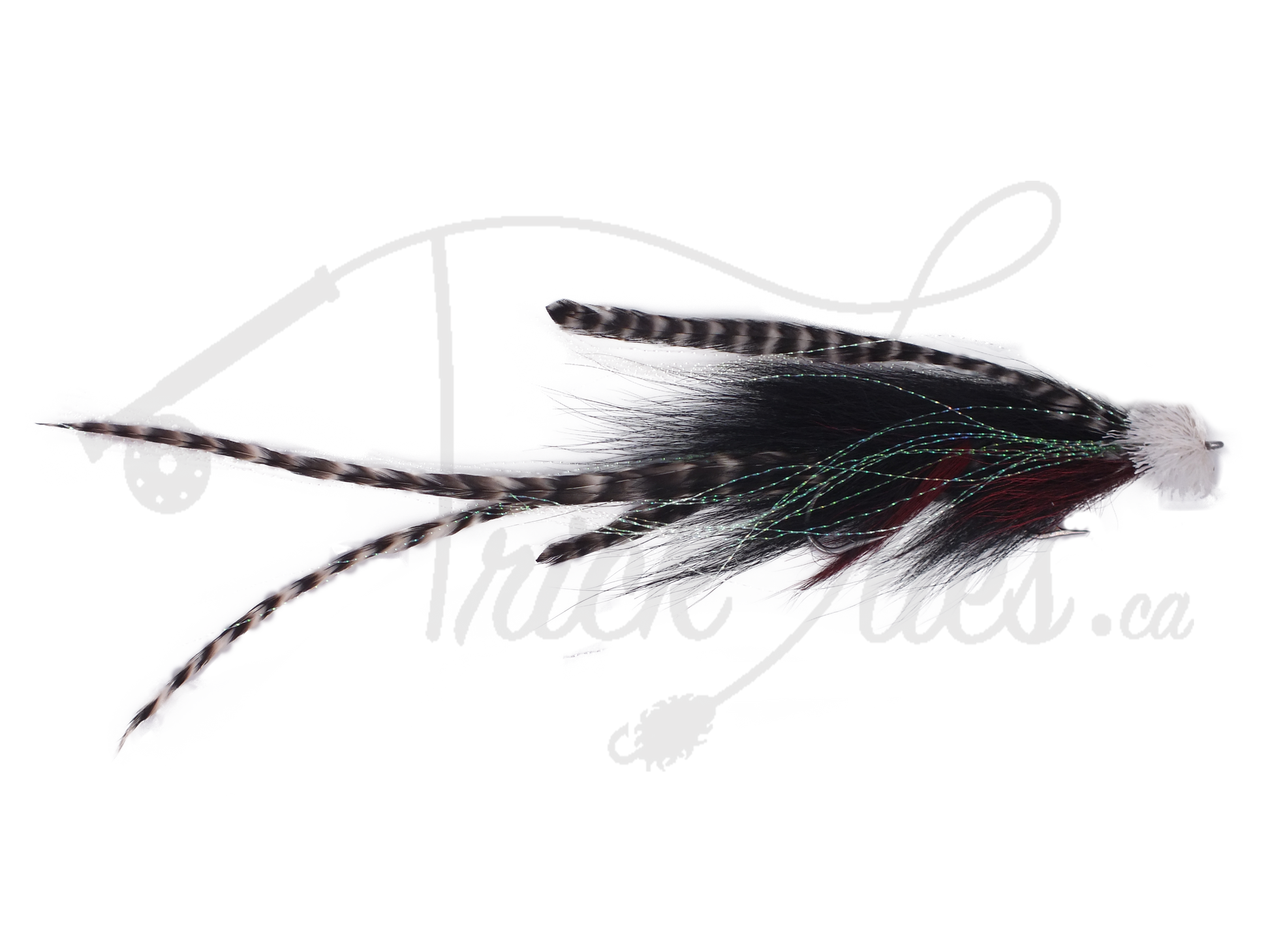 A Double Buford Black and Red is something that has been in development for quite awhile here at Trickflies.ca. Large flies are what we love to toss at monster pike and at 11 inches in length this is one of the largest we carry. The tailing hook is perfect for when the pike slightly miss their target as well as it creates a baitfish like motion in the water.