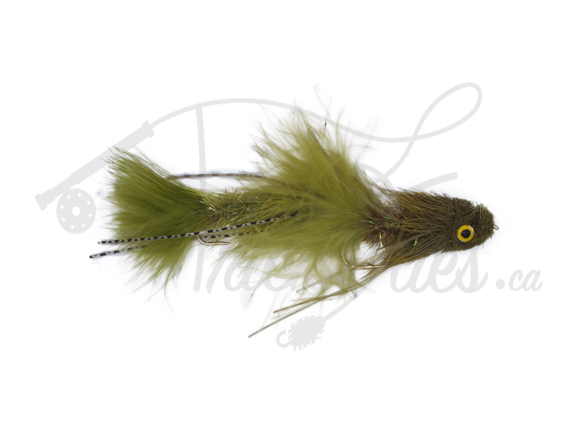 Galloup's Sex Dungeon Olive is our first articulated streamer and is a very popular fly for steelhead, bull trout, large and smallmouth bass, walleye and pike. Cast it to promising water and retrieve very quickly to entice a strike, then hold on. The current Trickflies.ca record holder for Walleye.
