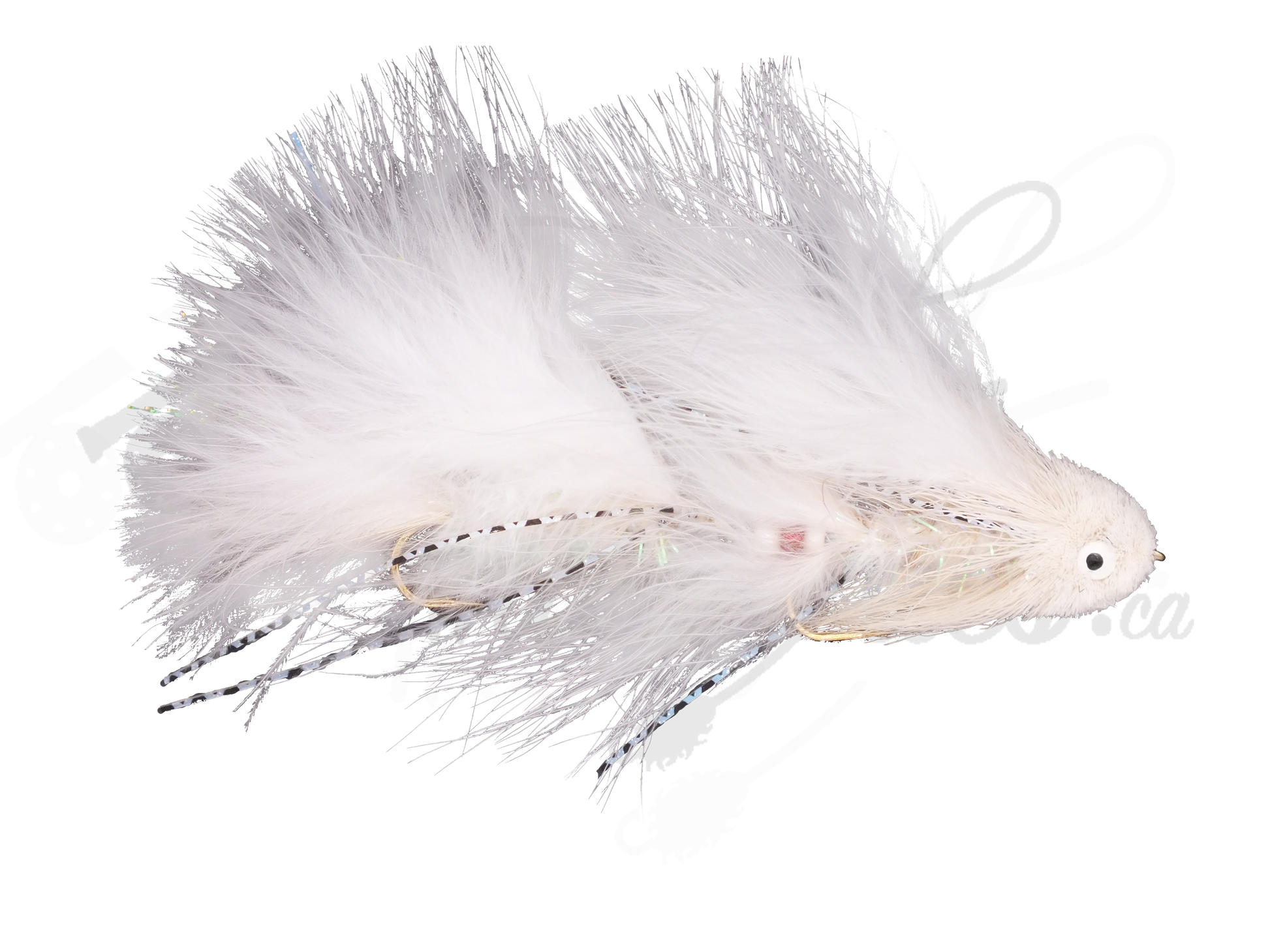 Galloup's Sex Dungeon White is our first articulated streamer and is a very popular fly for steelhead, bull trout, large and smallmouth bass, walleye and pike. Cast it to promising water and retrieve very quickly to entice a strike, then hold on.