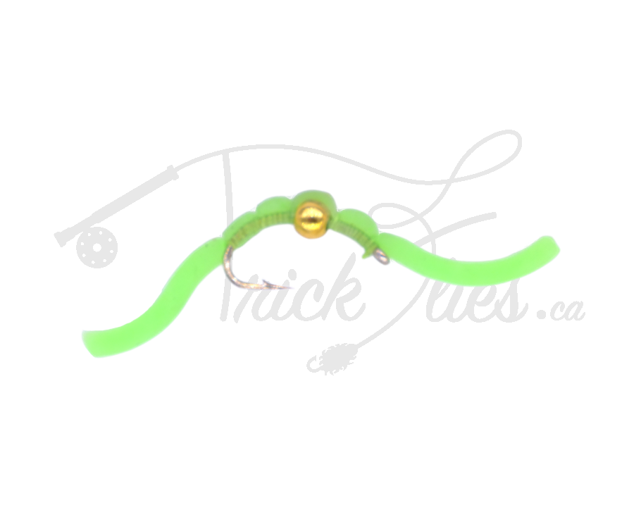 Our Beaded Squirmy Worm Chartreuse is great for all types of fish, even bass seem to enjoy a snack on these. Like 'em or hate 'em, all agree the Beaded Squirmy Worm Chartreuse produces results. The current Trickflies.ca record holder for Cutthroat Trout.