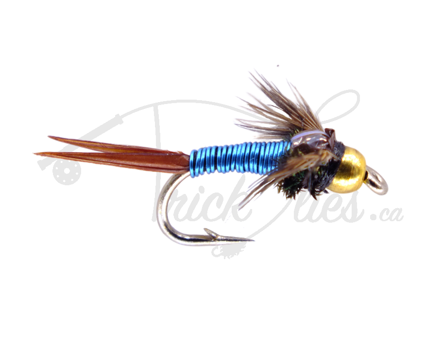 Our Beadhead Copper John Blue is a colour variant of our popular Beadhead Copper John. Best fished as a dropper or in lakes with a slow retrieval.