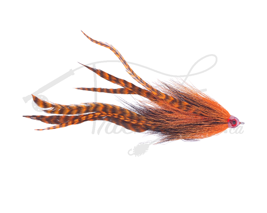 As one of our more elegant flies, the Devil's Tickler Orange/Black is a predator fly everyone should have. The feathers create a life like movement that attracts the most picky predators.