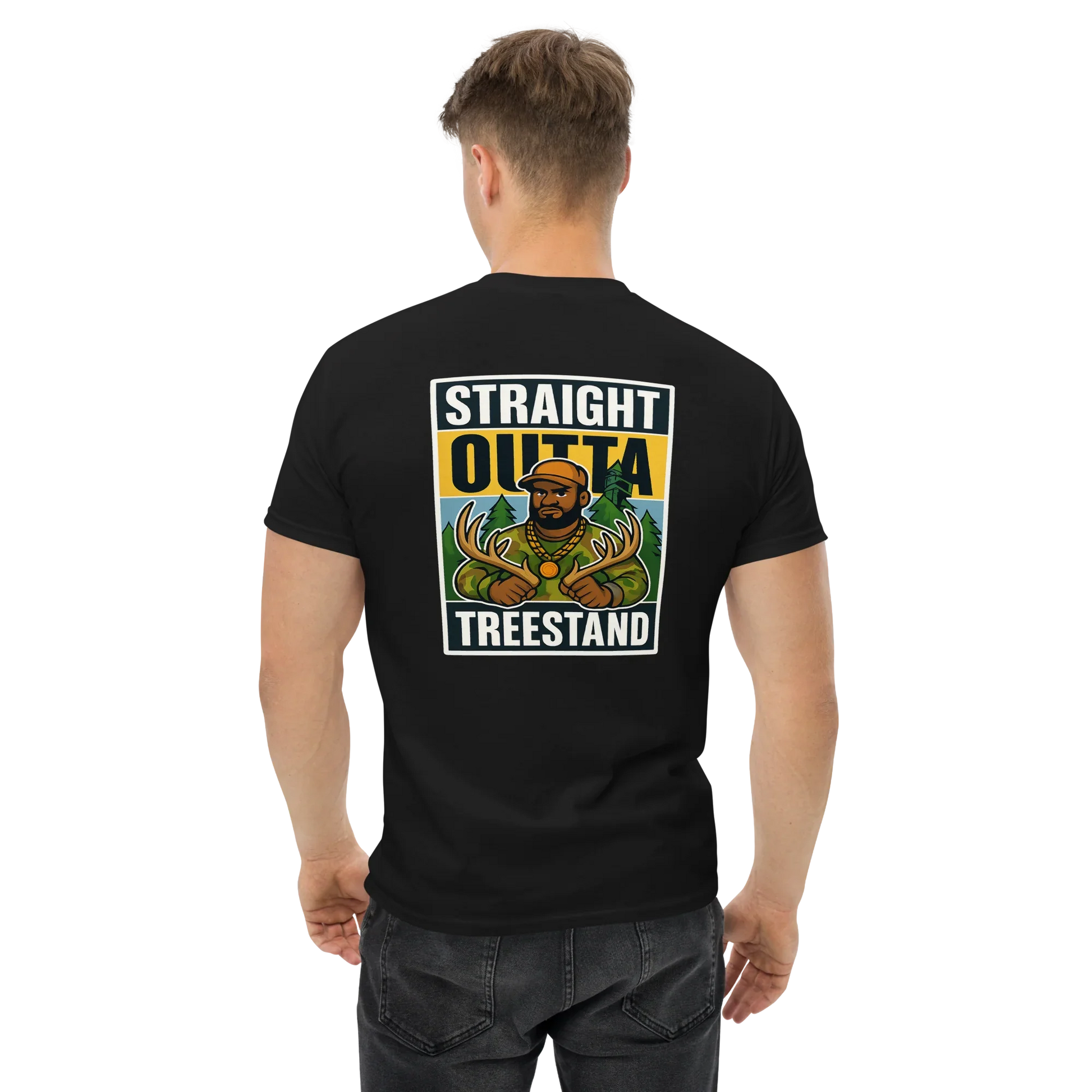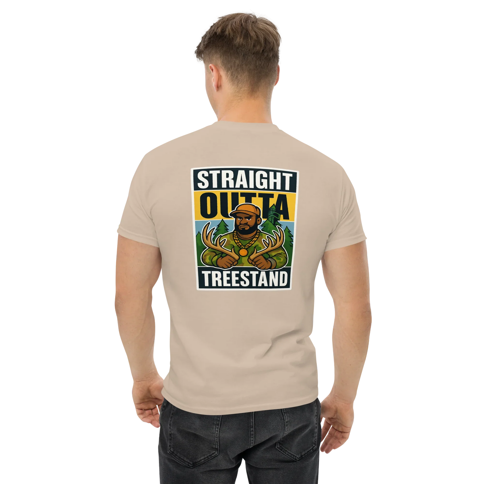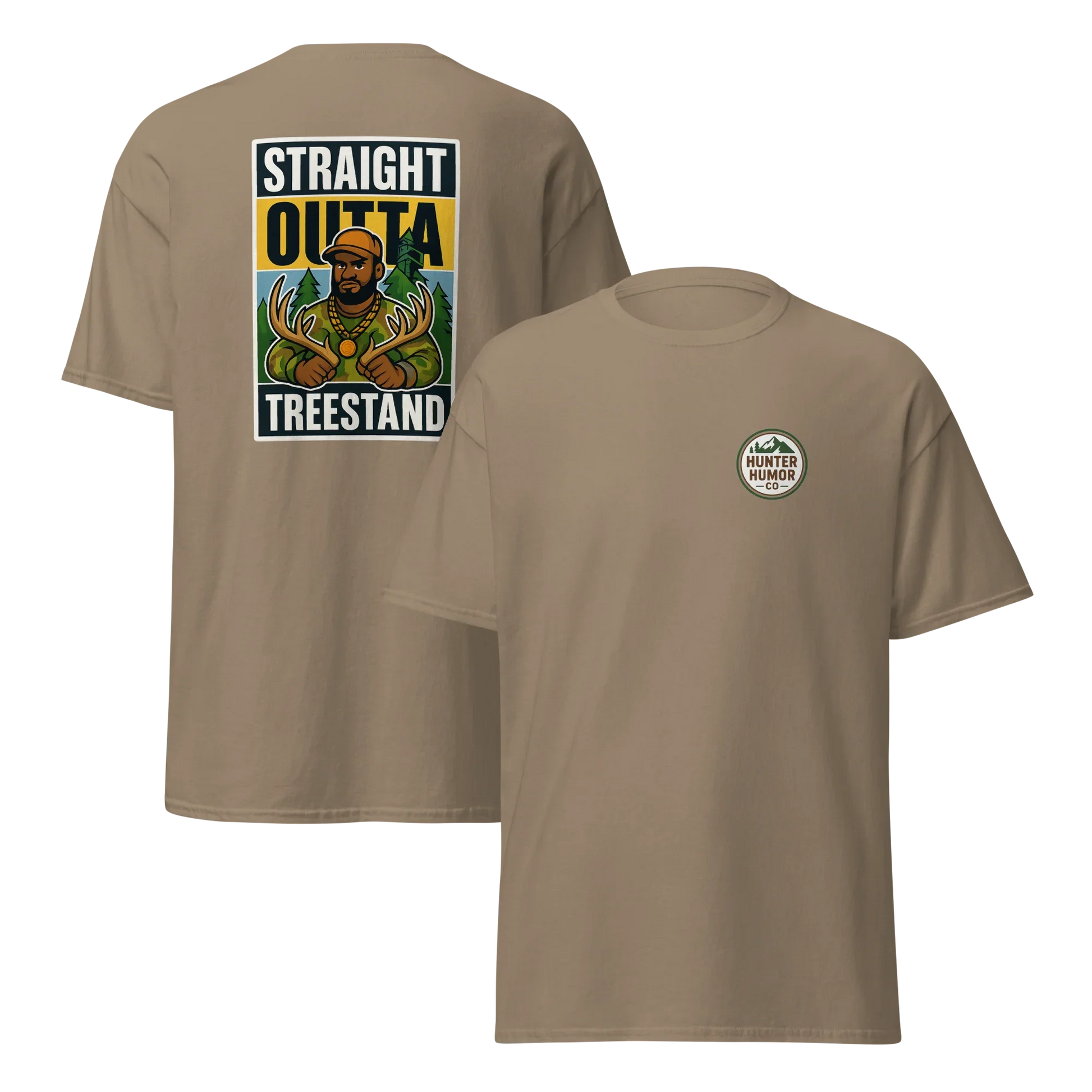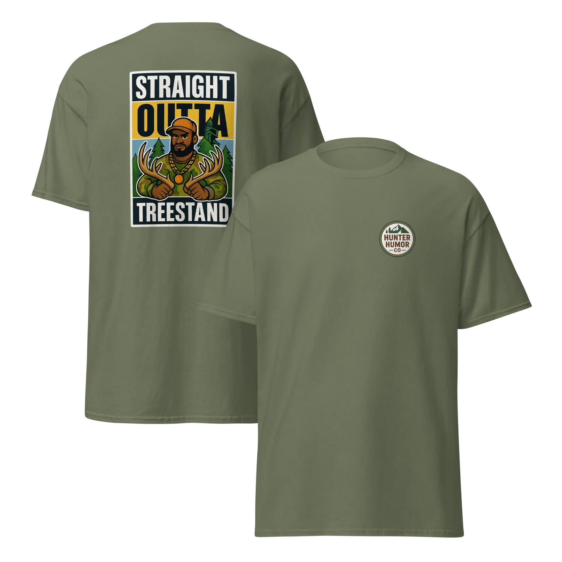 Show off your wild side with the Hunter Humor Straight Outta Treestand T-Shirt. This comfortable shirt is an excellent choice for hunters who want a touch of humor in their outfit. The clever design alludes to your favorite pastime in the outdoors and sets itself apart from other shirts and graphic tees. Whether you’re high in a treestand after that perfect shot or sharing laughs around a campfire, this T-Shirt lightens the mood and sparks conversation. The versatility makes it suitable for outdoor adventures and laid-back daily wear. Experience true comfort and expressive style every time you put it on.