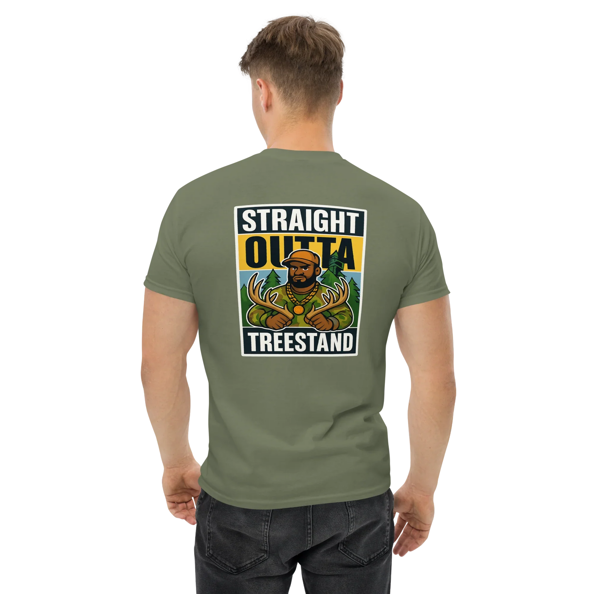 Place the end of the tape beside the collar at the top of the tee (Highest Point Shoulder). Pull the tape measure to the bottom of the shirt.