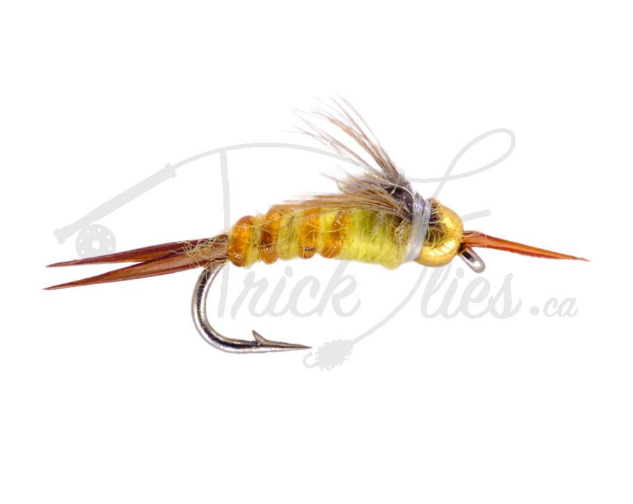 We offer our Micro Golden Stone in really small sizes at the request of a good friend in Colorado who claims that flies there are smaller than anywhere in the world. It has proven useful in Alberta and B.C. streams as well. Fish it like you would any stonefly nymph and see the results.