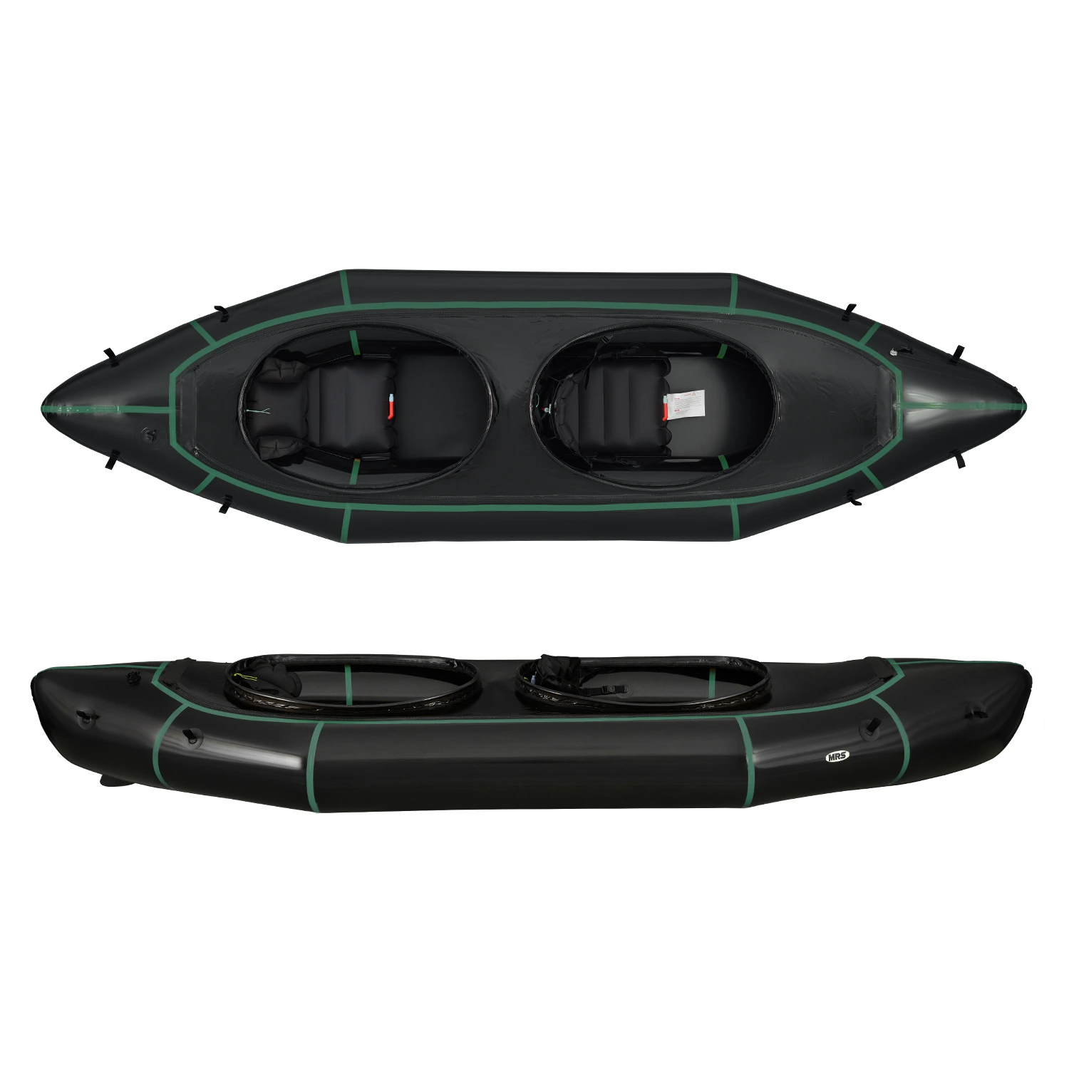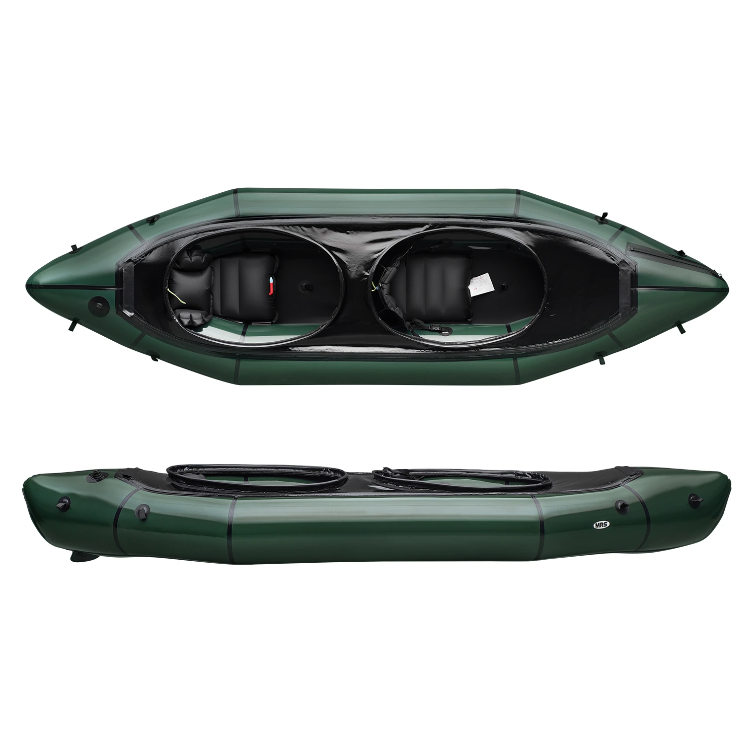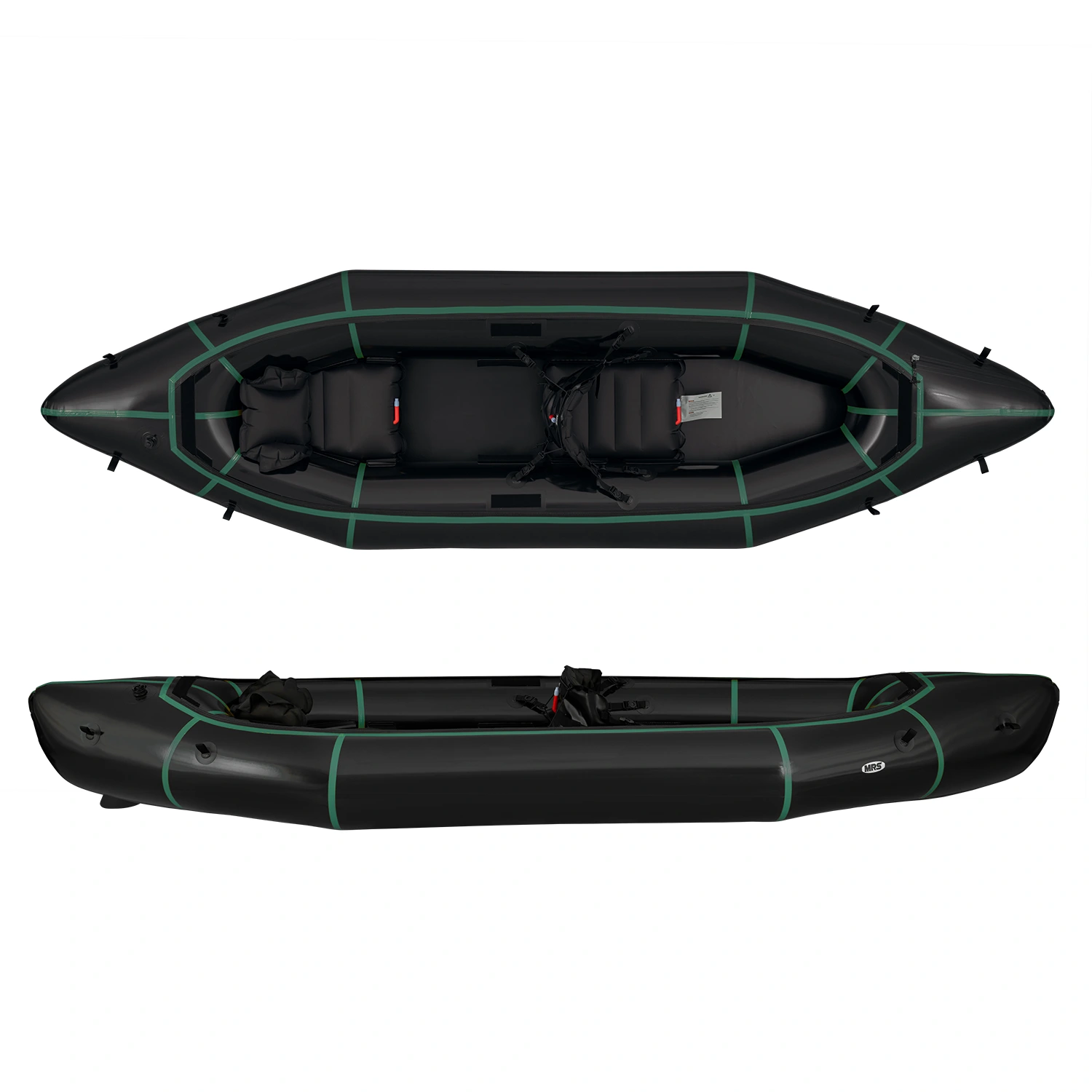 • Includes: 2 seats, 2 backrests (quick release backrest for the front), inflation bag, repair patches, straps, D type spray skirt, skeg, user's manual