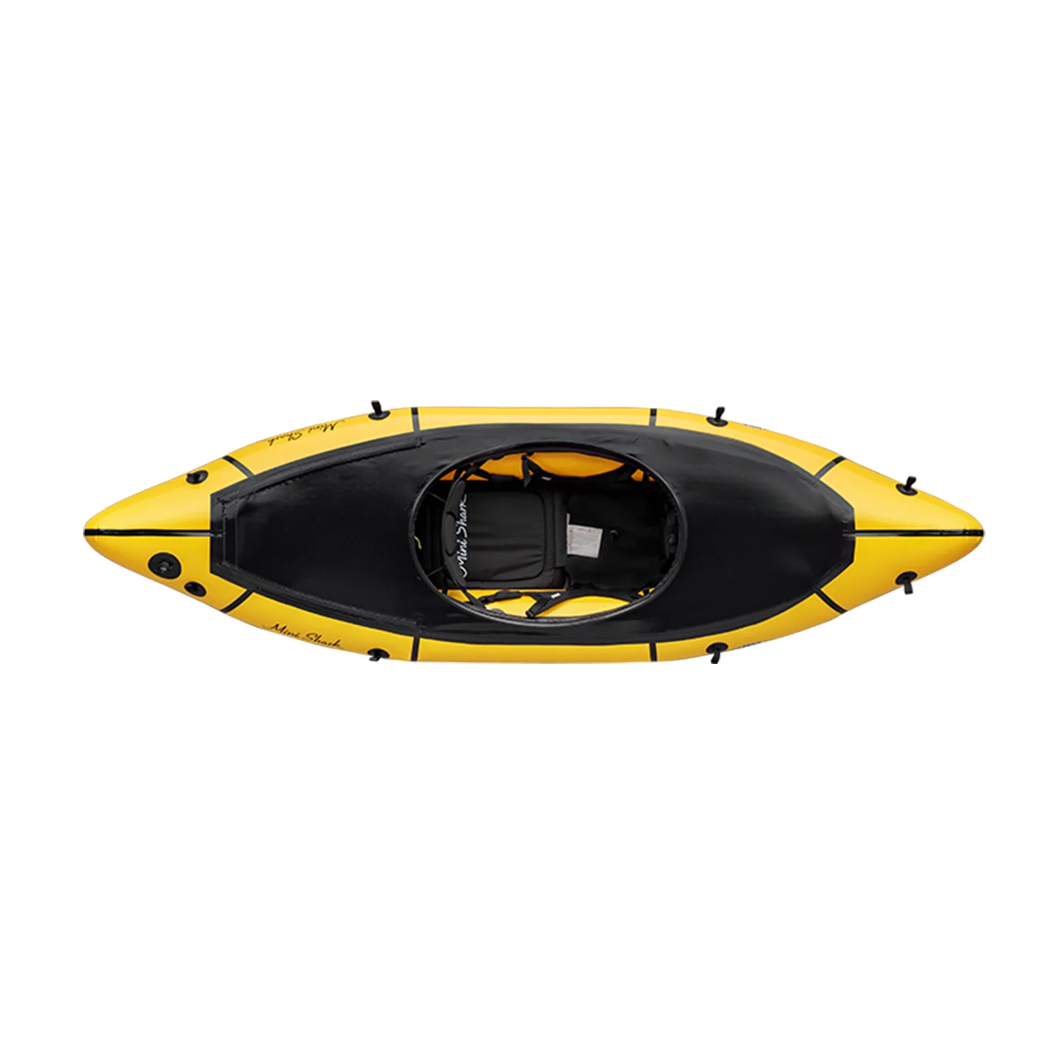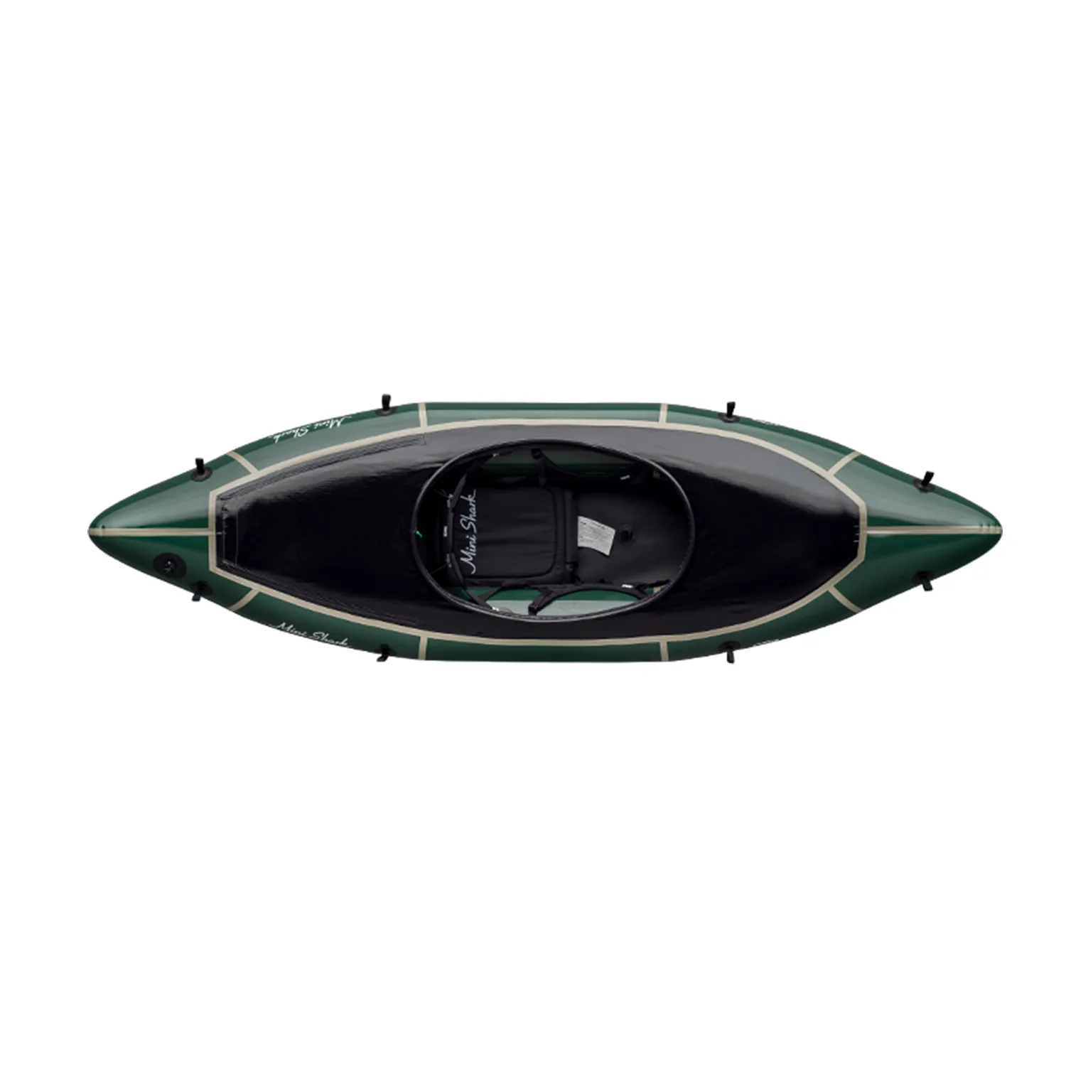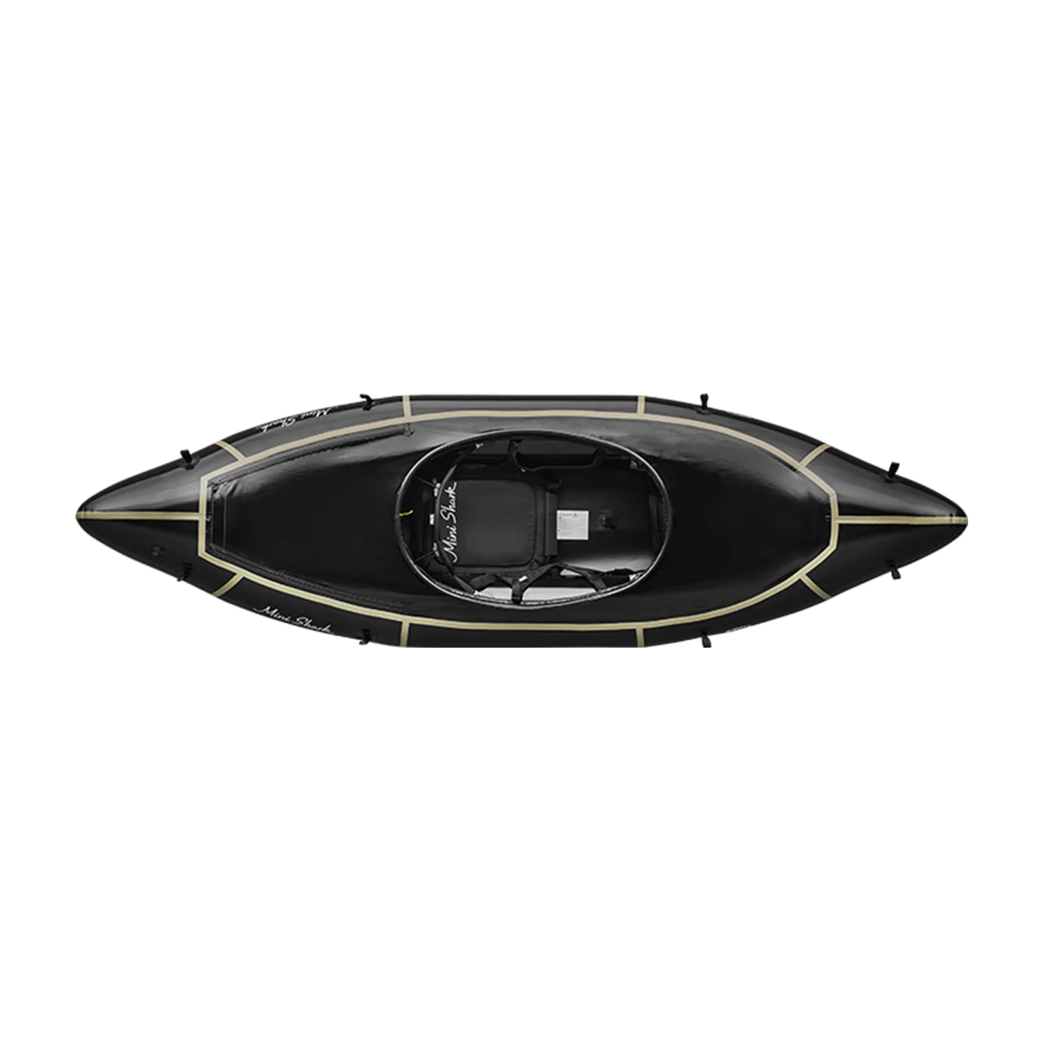 - The Mini Shark boasts a sleek, streamlined hull and a subtly upturned bow. These features enhance its appearance and make it a powerhouse in white water, effortlessly navigating through waves and boosting the packraft's agility. The tube is smaller than other models, which makes climbing back into the boat and self-rescue easy after capsizing. At the same time, the low-center-of-gravity seat makes it easy for the paddler to keep balance in white water, offsetting the negative impact of the small tube on stability.