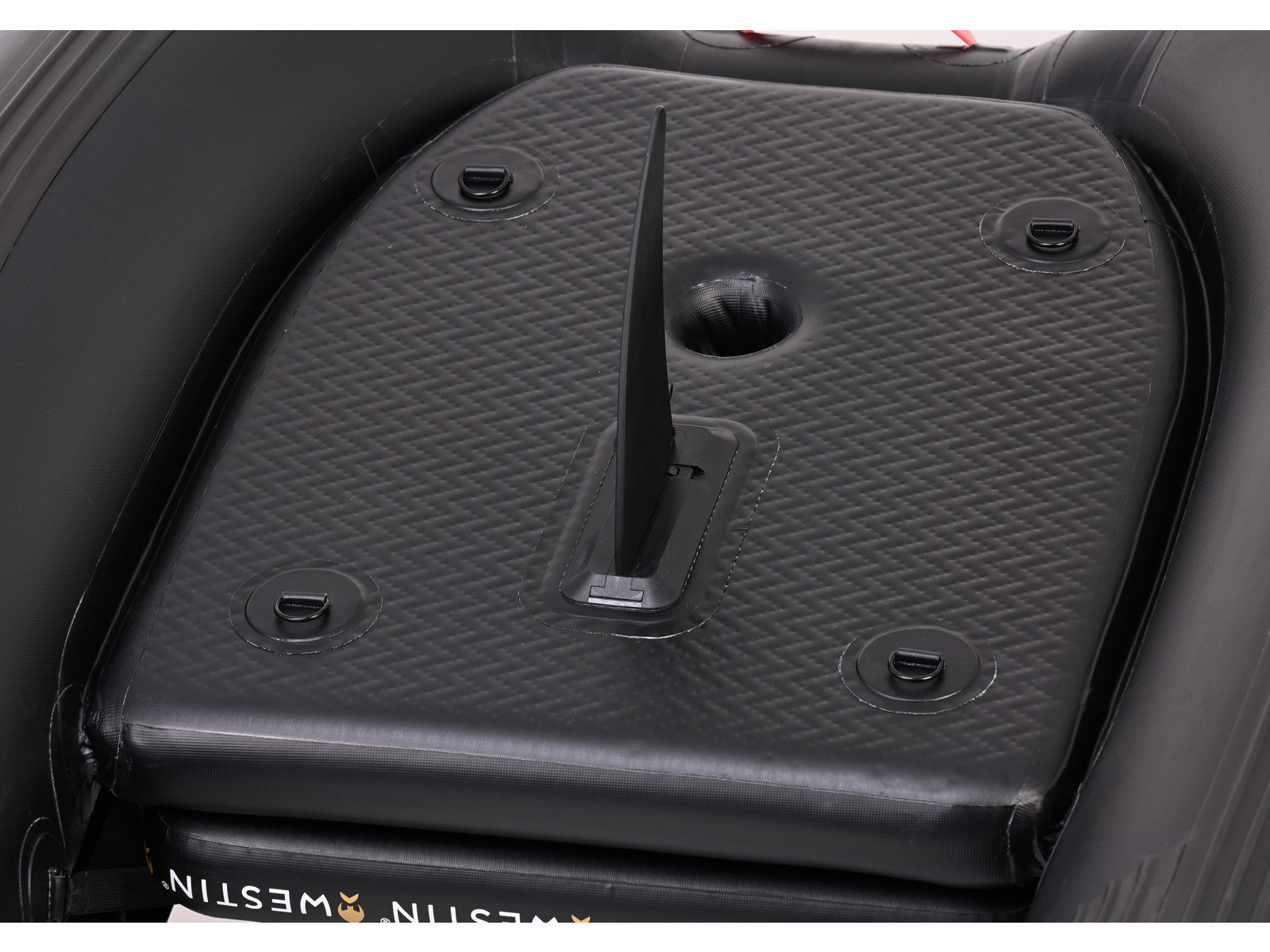 • The Westin W6 Belly Boat has been designed with comfort and efficiency in mind. The ergonomic design offers great support and stability, making it easier to fish for long periods without getting tired. The inflatable seat and backrest provide excellent cushioning, and the adjustable straps ensure a secure fit. Made with durable materials and reinforced stitching, this belly boat is built to handle the demands of your fishing trips and last a long time. Using the Westin Belly Boat in different water conditions is straightforward. The streamlined design and sturdy build offer good stability, even in rough waters. The inflatable pontoons give it the perfect buoyancy for a safe and balanced ride. The two supplied waterproof EVA bags fit on a sliding system, allowing you to move the bags out of the way when not in use. These sturdy, waterproof EVA bags protect your gear from the elements and are designed to fit all Westin boxes. The boat comes with a quality hand pump and pressure gauge, so you can easily inflate it to the right pressure. This is the ideal belly boat for serious users and is set up for electric engines and other accessories.